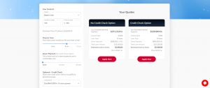 A No Credit Check loan means we will not pull your credit score at all. The down payments will be based on the value of the contract. The interest rate for No Credit Check loans will depend on both the down payment and term chosen.
